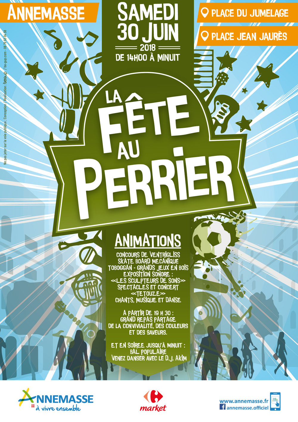 Création du visuel de l’événement autour de la fête du quartier du Perrier avec diverses animations.